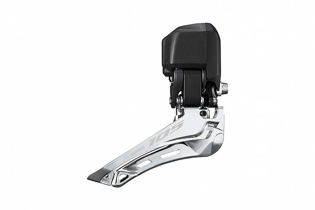 The Shimano 105 FD-R7150 Di2 Front Derailleur implements 12-speed Di2 technology to keep your big rings shifting smooth as butter.