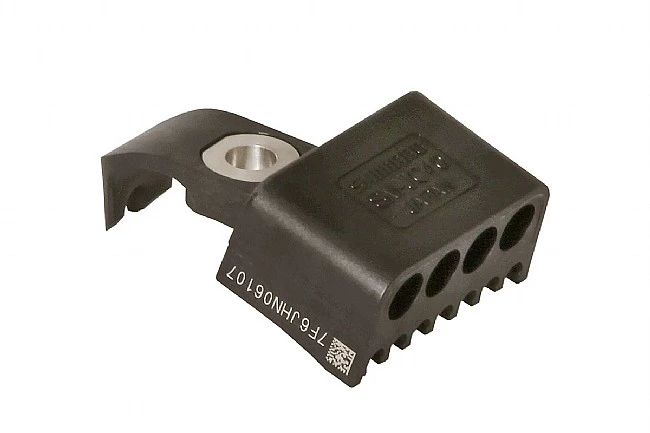 This piece is also called Junction B and is available in two versions: SM-JC40 for externally routed wires, which mounts under the bottom bracket shell, and SM-JC41 for internally routed wires, which mounts inside the down tube just above the bottom bracket shell.
