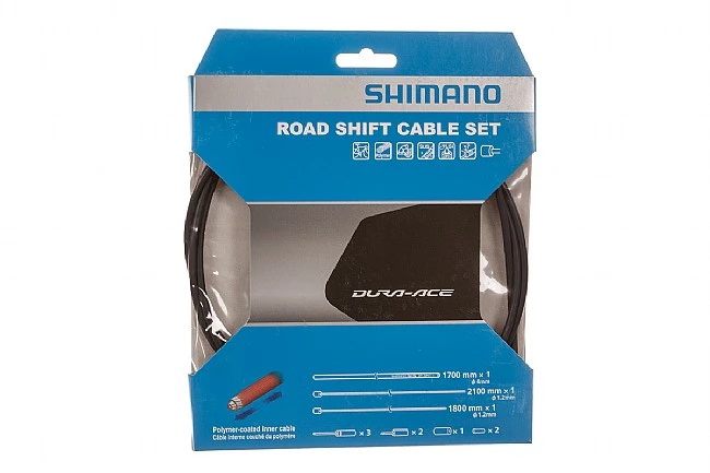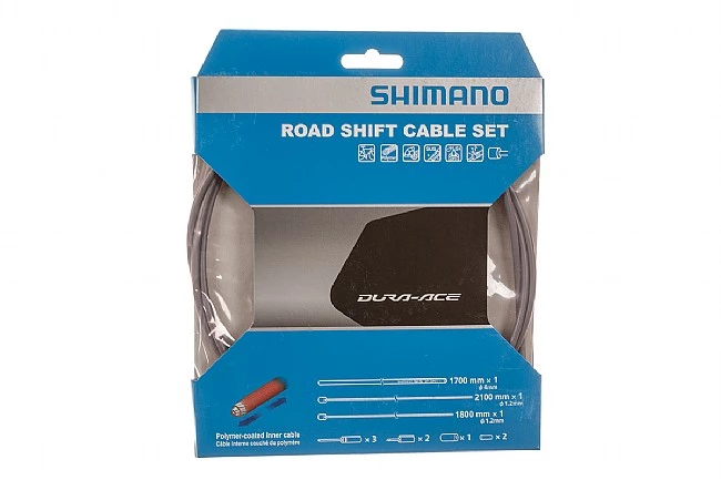 The Polymer Coated Shift Cable Set was designed by Shimano to deliver the smoothest shifting possible. It includes the same slick, stainless-steel cables included with Dura Ace 9000 and Ultegra 6800 shifters, and the pre-lubricated housing ensures precise, low-friction shifting that lasts.