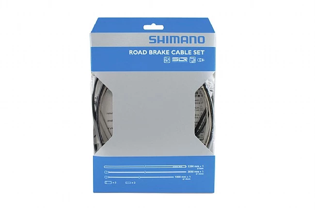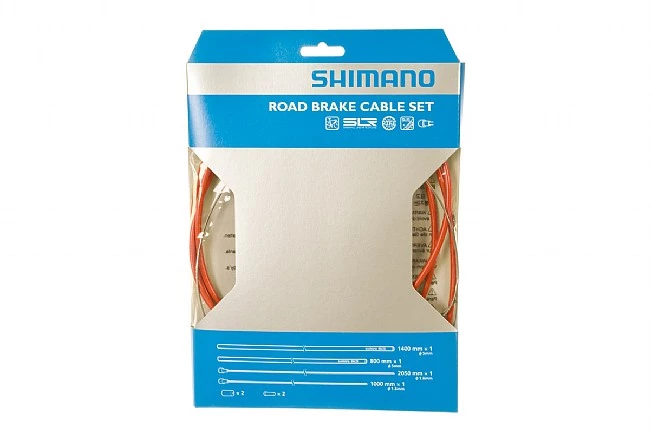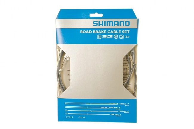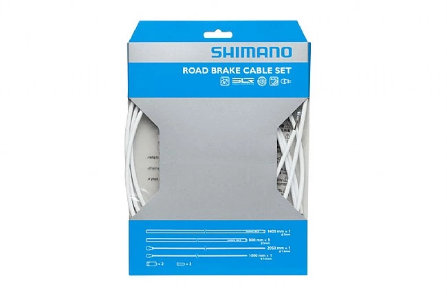 Shimano’s top quality Road Brake Cable Set is an excellent upgrade for your race machine. Includes two cables with PTFE coating for reduced friction and improved weather resistance, two lengths of 5mm brake housing, four ferrules and two end caps. Dura-Ace level.