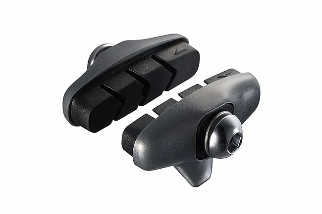 Gritty winter rim brake performance not quite what it used to be? Now is the perfect time to refresh those pads for renewed brake performance. Shimano Ultegra BR-6403 series brake shoes provide solid stopping power and long use for road cycling with caliper rim brakesets. Standard Shimano style non-replaceable nylon pad holders attach via hex bolt for secure rim braking.